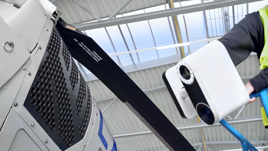 挑战:使用三脚架支撑的远距激光扫描仪和一台专业手持式三维扫描仪,完整扫描一台空中救援直升机,从起落橇到螺旋桨叶,甚至包括其中每一处表面细节。随后,将扫描结果转换成面面俱到的3D模型。