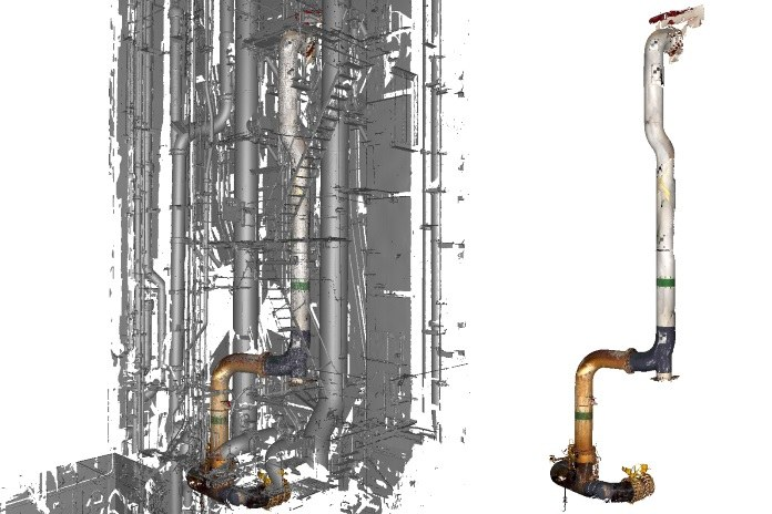 “第一步就是使用远距激光雷达扫描仪Artec Ray捕获管道所在房间和隔壁房间内部的几何,来确定空间环境和移除更换的顺序,” Shonan Design的首席应用工程师Lee Siow Hoe表示。
