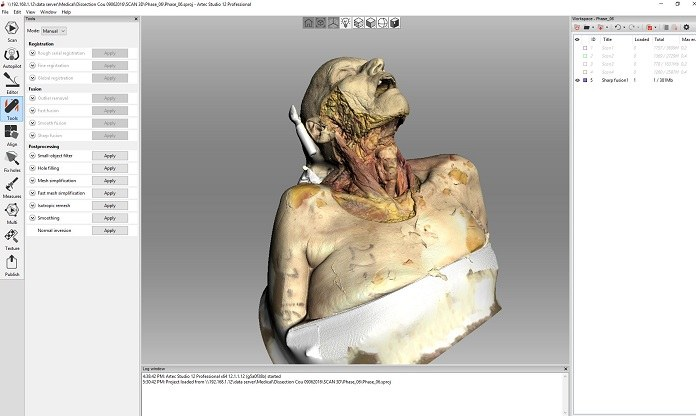 为确保应用程序中的数据尽可能逼真,所有实体解剖步骤都经过3D扫描,再转移到培训应用中。IMA Solutions的专家承担了这项重要工作。他们使用高精度Artec Space Spider 3D扫描仪,捕获了所有解剖步骤,为应用程序制作出了栩栩如生的3D模型。