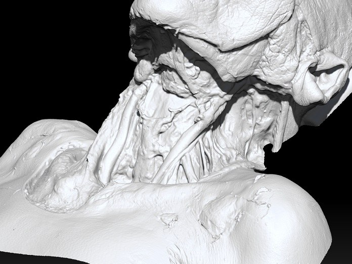 解剖过程中,本杰明和他的团队需要接触各类组织,而且需要体现它们的纹理和材质特征。首先,他们对三个解剖区进行了可行性测试:颈部两处,骨盆腔一处。IMA Soultions扫描专家希望扫描效果达到预期,还能发现难以预料的问题。最初的结果很好,整个3D扫描过程都得到了团队支持。