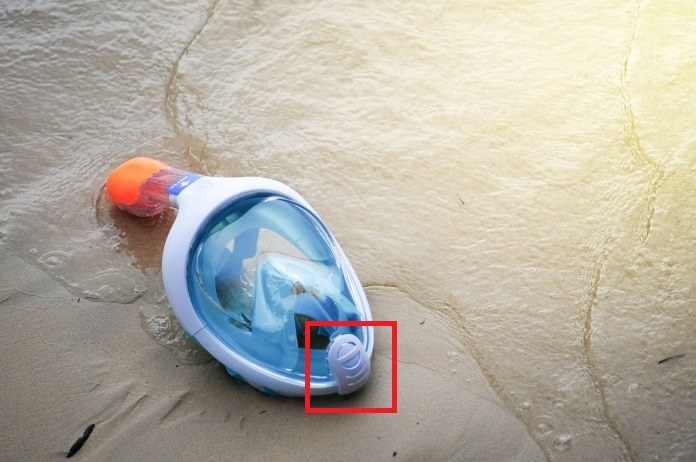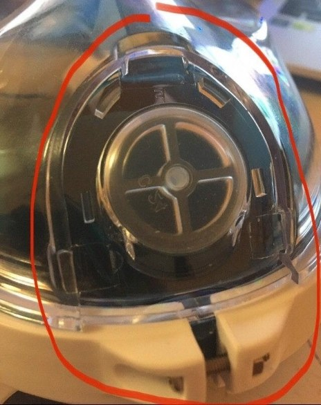 但面罩还有个问题没解决。因为最初的设计是用于水下,因此面罩下方有一个出水阀门。这主要是为了在潜水过程中,让误入面罩的水流出。