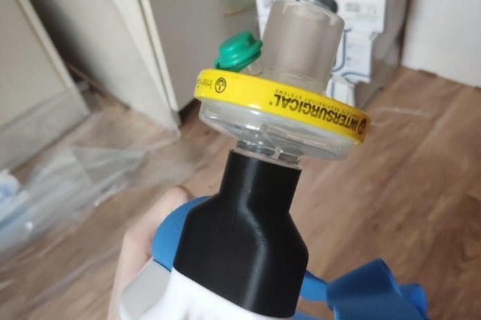 为解决这一缺陷,Makers Group定制了一款3D打印管口,安在气管接口上,为面罩上的专业空气滤网留出了空间。