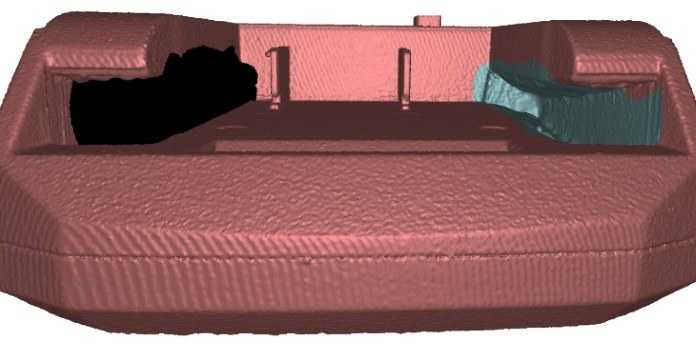 有办法解决吗?Denis利用Artec Studio 15的精准定位和镜像工具,轻松将右侧内壁复制到了左侧,最后与周围部分对齐。