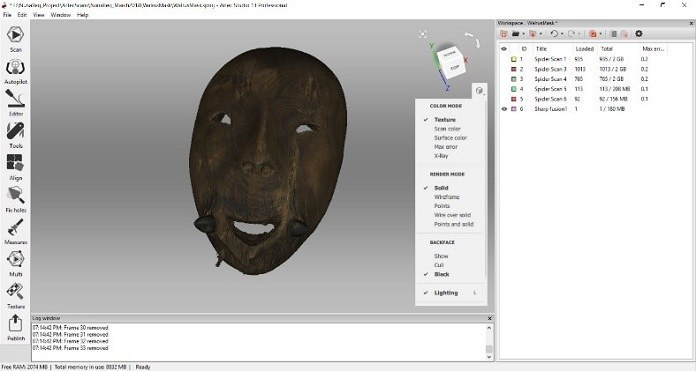 使用Artec Space Spider扫描制作的模型,3DVisLab团队已为教学资源研发处面具上色功能。