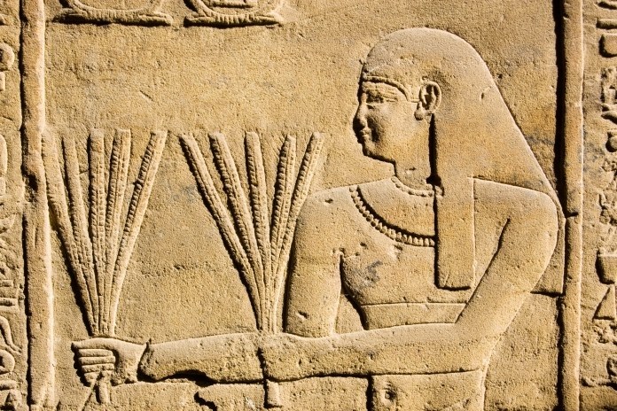 荷鲁斯神殿中的古埃及牧师手握小麦,约公元前2世纪