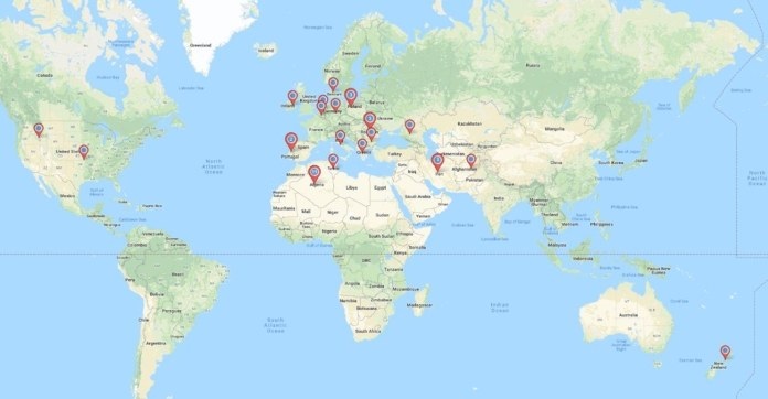 谷歌地图标记了美国农业部供应的40种不同黑麦草种子的来源