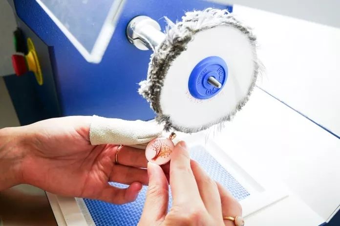 全新工艺如下:客户在线选择预制设计的珠宝,设计师用专门的珠宝设计软件3Design制作成品模型。根据客户喜好,选中扫描好的基本款并优化,然后采用浇铸蜡树脂打印。蜡质模具随后被送到装有金属材料的浇注机上制作成形。