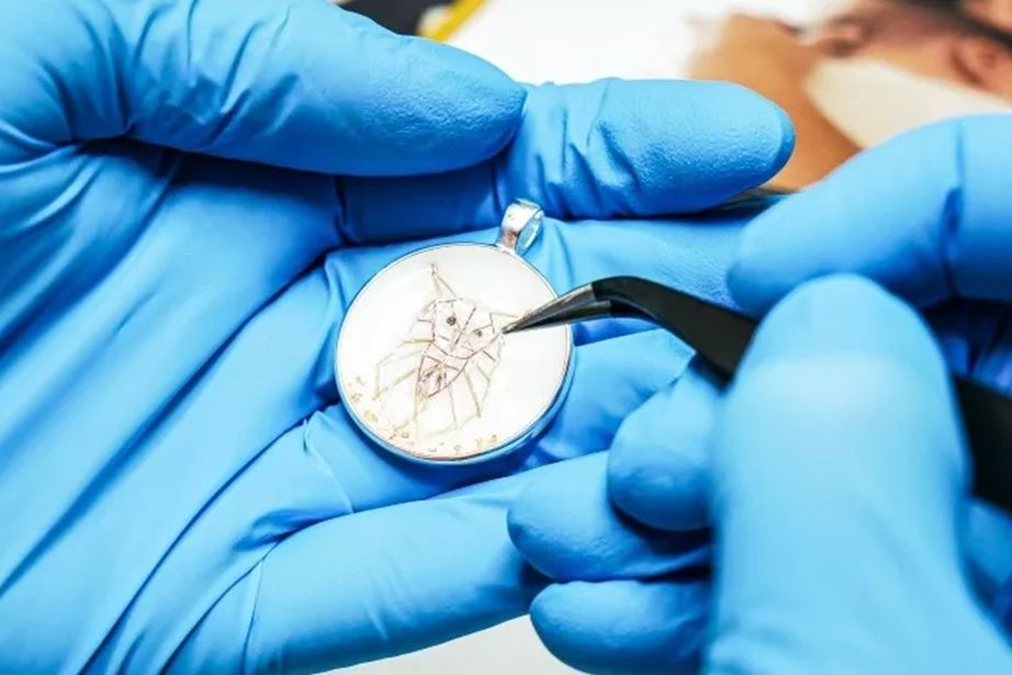 由于天然材料不同,设计工艺有难有易,设计和制作时长几小时到一周不等。比如母乳,和环氧树脂混合后,需要1.5周才能硬化,形成最终形状,再装入珠宝。
