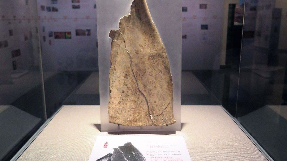 早在公元前1400年的中国商王朝(如今河南安阳小屯殷墟)都城生活的王室成员使用龟甲兽骨记录占卜和重大事件──这些经过整治﹑钻凿﹑烧灼﹑刻辞的龟腹甲﹑背甲和肩胛骨载体,因文字契刻于其之上﹐故称甲骨文。