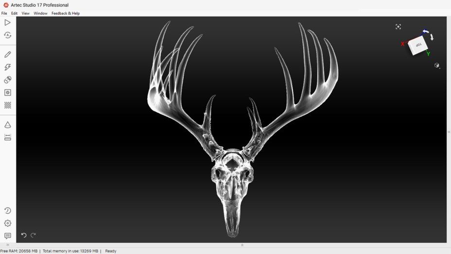 Artec Studio截屏:Leo扫描的鹿角和头骨的3D模型。图片来源My Engineering Ltd.