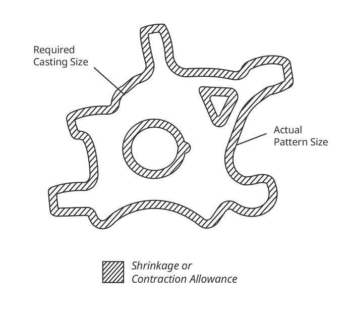 收缩是铸造过程的常见结果,铸造厂通常会为客户提供一些指导,来弥补特定材料产生的收缩,用包围盒定义零件尺寸。由于几何复杂性以及物理浇铸过程的影响,通常大多数零件会出现不均匀的收缩。因此,铸造常常被视为“离散公差”的过程。