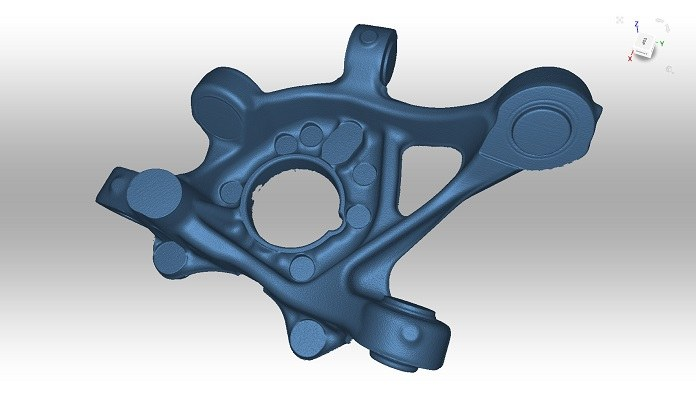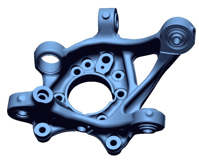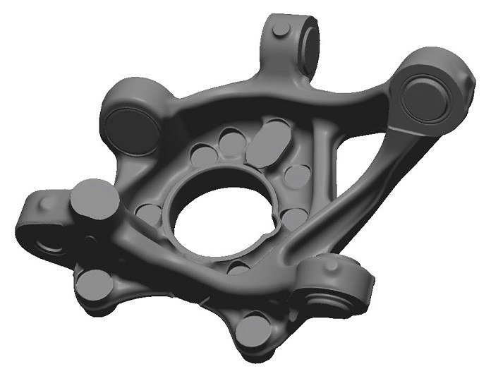 在该制造案例中,我们重复了客户的一项真实项目,但简化了部分细节。在本案例中,我们的客户需要研发一辆特别的轻量型自动驾驶汽车。为加快上市时间,选择了目前市面上许多汽车部件与系统,结合起来完成汽车原型。在这过程中,他们找到了一款特殊的转向节,对项目颇有用处,客户需要对其数字化,捕获设计,用于轻量材料的设计修改与生产。