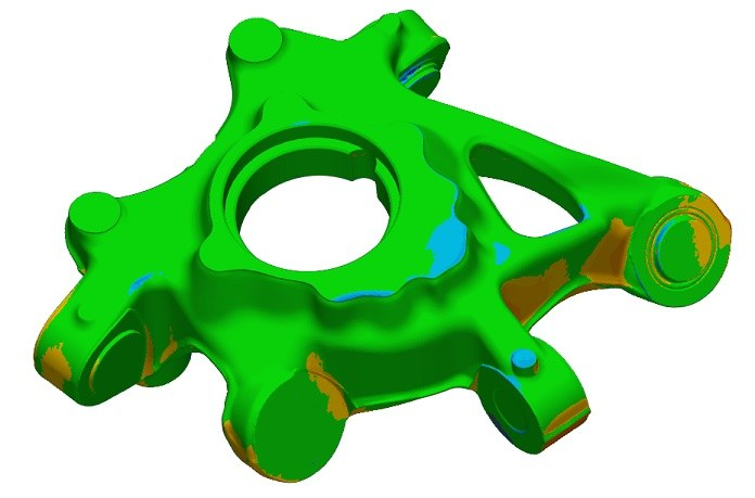 在转向节的铸造过程中,我们研究了适合模型和材料的收缩率。铸造厂建议使用2%的均匀缩放来生产准确的零件。为了研究3D扫描和精度缩放因子对成品精度的影响,我们按照建议的2%缩放因子制作了蜡模,并提供给铸造厂。