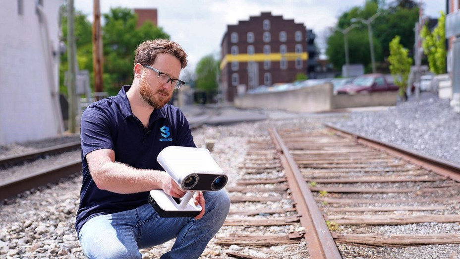 GoMeasure3D的3D扫描专家Art Pekun使用Artec Leo扫描一段铁轨