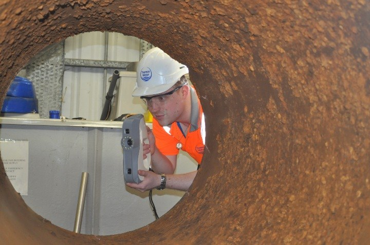 表面缺陷扫描仪可以使工作人员使用相应的NDT工具去测量,柯尼卡美能达Vivid系统可用于小直径(4-8”)水管的腐蚀寻查。但不适用于18’’直径以上的水管。大型水管需要手持式扫描仪,因此泰晤士水务公司邀请市场不同供应商展示自己的设备。Patrick Thorn & Co.的首场展示结束后,泰晤士水务与当地Artec专家携手合作对大块管道部分进行了扫描,发现Artec Eva™能够满足他们的核心需求。公司表示,Eva能为公司带来符合需求的成本效益方案。购置Eva™后,Patrick Thorn协助工作人员进行了扫描系统的全面培训,并帮其添置了可从Eva™进行数据详细分析的附加软件。