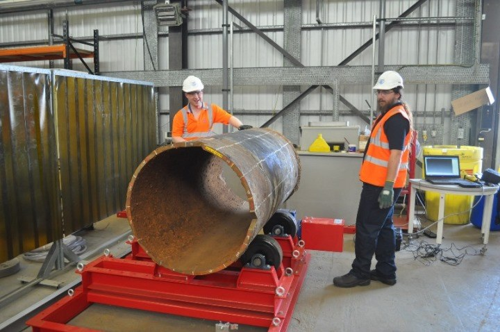 目标:对喷射清理的大直径铁管道所选部分进行3D扫描,制作精准3D模型,用于测定管道表面的厚度变化。