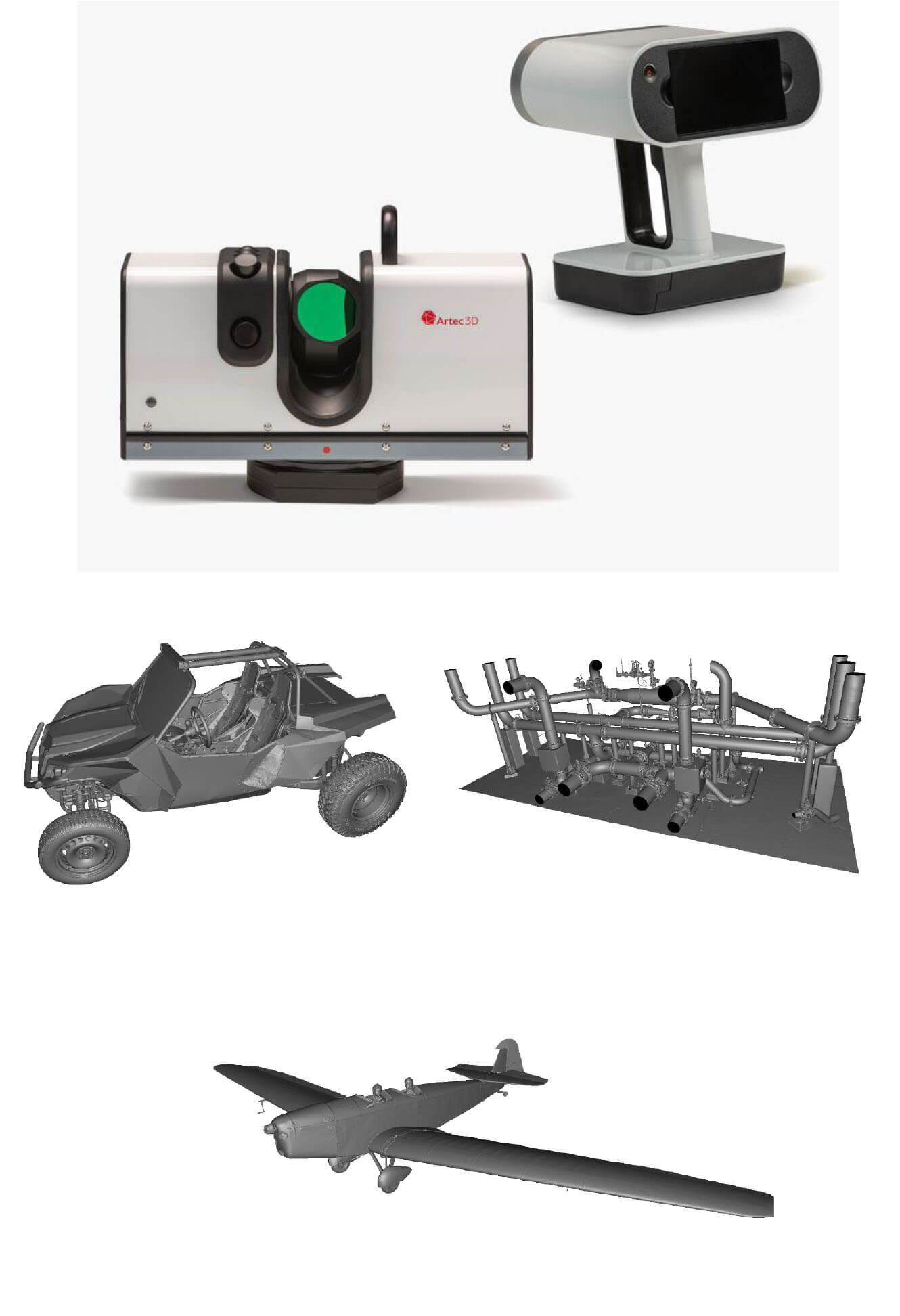 使用远程数据采集设备的组合对建筑物、大型车辆和文物进行3D扫描。