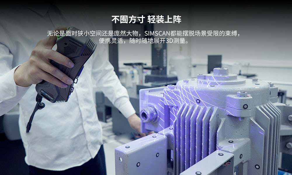 SIMSCAN轻巧便携,不受工作环境束缚,无论是在狭小空间中,还是面对庞然大物,都能随时随地展开3D测量。
