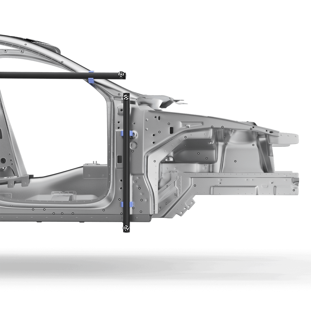 作为自动驾驶测试和研发的一个环节,大型汽车制造商会借助计量套件精准测定车身传感器的位置,并将其准确置于汽车坐标系中。
