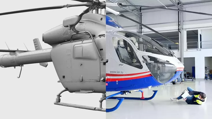 正在接受Artec Leo三维扫描的MD-902直升机及部分3D模型