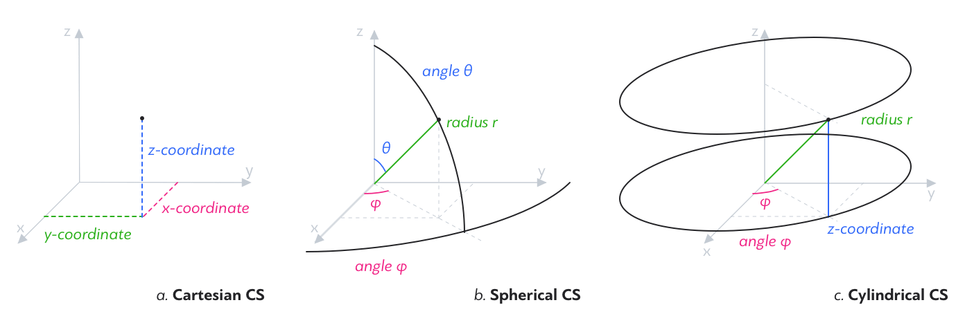 此外也有一些其他坐标系,比如球坐标系和圆柱坐标系。这三类坐标系的共同之处,就是它们都有三个独立参数,能清晰描述空间内任何一点的位置,无论是否为一个平面。这听起来很简单,但对3D扫描而言,却是基本的原则,能帮您更好地理解并驾驭这项改变世界的技术。