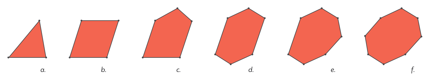 图4:多边形:(a)三角形(b)四边形(c)五边形(d)六边形(e)七边形(f)八边形