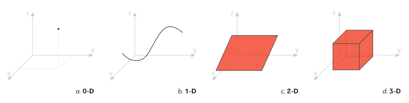 物理世界的物体除了空间位置,它们自身也有维度。物体可以是0维、1维、2维或3维。
